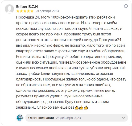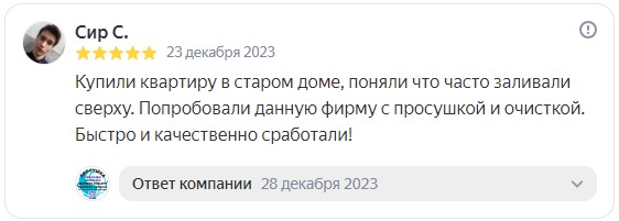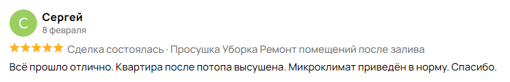 * Не следует полагаться на низкую цену услуг просушивания, так как она может быть связана с недостаточной квалификацией или неэффективным оборудованием.