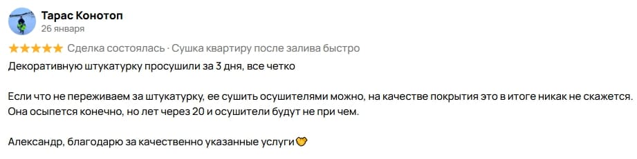 На рынке много фирм кто предлагает осушители воздуха в аренду, или услуги по просушиванию. Сложно по телефону оценить профессионализм мастеров и к сожалению часто выбором клиентом фирмы является низкая цена, которая не может быть низкой из-за дороговизны оборудования и времени просушивания.
