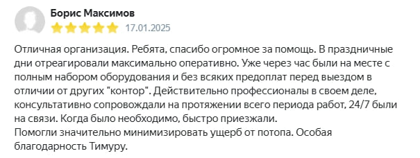 * Стоимость ремонта после залива в 15 раз превышает стоимость просушки.